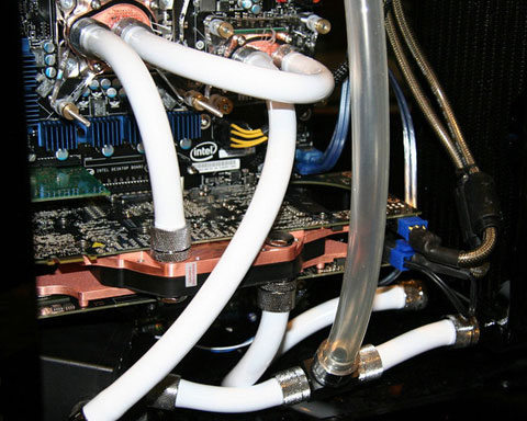 Les waterblocks pour cartes graphiques ultra haut de gamme sont toujours très attendus, ne serait-ce que pour la qualité des ouvrages souvent proposés, et encore plus lorsqu’il s’agit de cartes multiGPU. Danger Den vient de présenter un tel monstre, dont les premiers exemplaires se sont écoulés comme des petits pains malgré un prix hors norme: 189$95. Photos en suite de news du waterblock seul, mais également monté sur une GTX 295 et pour finir dans une configuration.