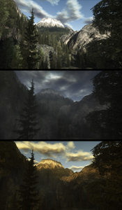 allez voila la suite, avec une image qui compare le même site soumis aux changements d’ensoleillement selon le cycle jour/nuit du jeu. Admirez et pleurez