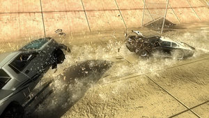 Bugbear, qui a déja fait connaitre son jeu par une qualité indéniable, présente un peu plus son titre exclusif XBox360 Flat out ultimate carnage. Pour se montrer digne des 500000 acheteurs du premier Flat out, Bugbear a amélioré son titre par rapport au trés récent Flat out 2. Pour cet épisode exclusif, les changements sont d’ordre visuels principalement pour tirer un peu plus de puissance de la console à Bilou : les voitures sont au nombre de 12 contre 8 à Flat out 2, chaque véhicule est composé de 20 000 polygones contre 8000, et les objets du décors passent de 5000 à 8000. Donc un bon gros lifting trés next-gen, FOUC devrait rappeller les longues et superbes sessions de Destruction Derby sur la Playstation. Le jeu étant finalisé à 70% actuellement, la sortie reste maintenue pour juin 2007, ce qui posera un dilemne cornélien au joueur que vous êtes, car coïncidant avec la sortie de Colin Mac Rae : DIRT. Economisez, les pneus crisseront en juin, soyez en assurés!!