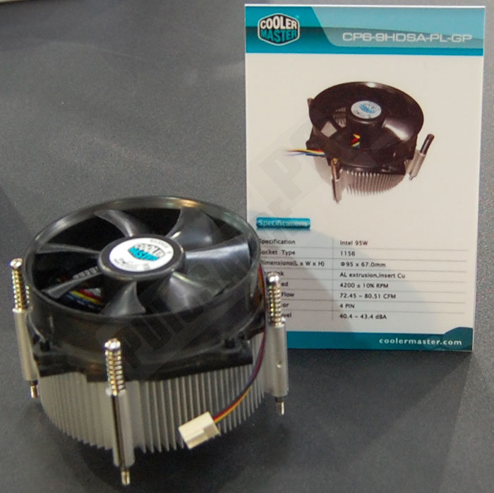 Cooler Master lui aussi disposait sur son stand d’un refroidissement compatible : le CP6-9HDSA-PL-GP. Le salon est donc l’occasion de croiser des cartes mères et ventirads LGA1156 pour aller avec ce cher Lynnfield tant attendu… mais lui bel et bien grand absent de ce CeBIT.