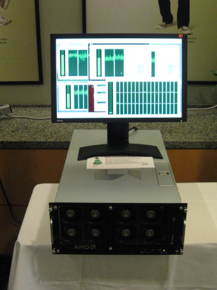 AMD a fait la démonstration il y a peu de l’Opteron 6000, comprenant de pas moins de 12 cœurs, et prévu pour le premier trimestre 2010. Composé de deux dies Istanbul montés côte à côte, ce nouveau CPU (baptisé Magny-Cours) entérine la position d’AMD à vouloir produire des processeurs avec de plus en plus de cœurs. La machine présentée lors de l’anniversaire des six ans de l’Opteron affichait ainsi 48 cores fonctionnels, grâce à une carte mère accueillant quatre de ces nouveaux processeurs. (Source matbe)