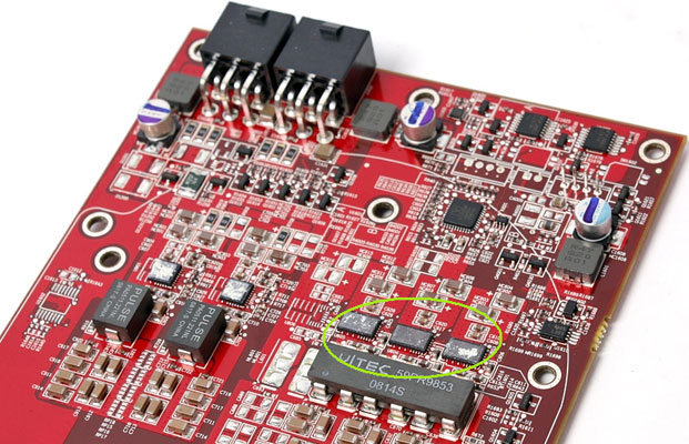 Faut-il alors crier au scandale ? Non, car pour le moment donc seuls les overclockeurs extrêmes pourront être un peu handicapés dans leurs tentatives de records, et de plus pour l’avenir tout est au conditionnel, et les cartes graphiques ont une durée de vie suffisamment courte pour qu’il soit plus que probable que jamais de réels problèmes ne soient observés, suite à des nouveaux logiciel révolutionnaires et ultra consommateurs. S’ils arrivent, ils ont toutes les chances de le faire alors que les HD4870 et 4890 ne seront plus qu’un vieux souvenir. De plus, et c’est une information très importante : toutes les HD4870 et 4890 ne sont pas atteintes, loin de là même. Comme dit plus haut dans cette news, seules les cartes respectant le design AMD au niveau de ces fameux VRM sont atteintes, et la raison est clairement identifiée : AMD n’a à la base prévu qu’un VRM à 3 phases pour le GPU, alors qu’un 4 phases aurait été plus adapté. Comme les marques ont libre choix de leurs designs finaux, beaucoup sont déjà passées à du 4 phases, depuis longtemps même chez certains, comme Powercolor qui l’avait déjà adopté pour sa HD4870 PCS+ sortie il y a de nombreux mois maintenant, et qui passe avec succès les tests OCCT 3.1, même avec overclocking et une consommation bien au delà des 100A. Tout se joue donc là : le nombre de phases des VRM, et voici quelques clichés pour vous permettre de reconnaître la différence entre les cartes. Aucune raison donc de sortir un carton rouge à AMD, mais, tout de même un petit carton jaune pour cette économie assez ridicule financièrement parlant, qui leur coûte par contre un joli buzz jamais bienvenu quand il est négatif comme ici.