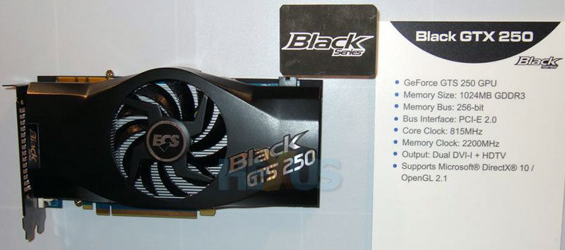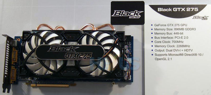 La mode est aux cartes graphiques customisées, et ECS y va des siennes lors du Computex, avec sa série "Black" (XFX doit apprécier). Partenaire Nvidia exclusivement, les ECS Black sont toutes de la gamme GeForce, et 3 références pour le moment sont présentées : deux GTS 250 et une GTX 275. Commençons par les GTS 250. Leur point commun : un overclocking GPU poussé comme jamais, avec 815MHz au compteur contre, pour rappel, 738MHz d’origine. Les ressemblances s’arrêtent là par contre, car après ECS a opté pour des choix différents, y compris dans les refroidissements utilisés. La première GTS 250 Black possèdera en effet 1Go de GDDR3 cadencée classiquement à 2200MHz, et un gros ventirad avec un seul ventilateur au centre, mais un modèle à 11 pales et qui semble bien faire 100mm de diamètre. La seconde sera elle dorée de 2Go de mémoire vive, une quantité non seulement sans intérêt sur une telle carte, mais qui plus est manquant de performance puisqu’elle ne sera cadencée qu’à 1800MHz. Pour cette seconde GTS 250 ECS a opté pour un ventirad à 2 ventilateurs, de plus faible diamètre. Pour finir la GTX 275 embarque elle un refroidissement signé Arctic Cooling : l’Accelero Twin Turbo Pro, qui diffère du premier modèle par la présence de deux ventilateurs à 11 pales de 90mm de diamètre contre de classiques 80mm sur le Twin Turbo premier du nom. Là encore le GPU sera bien overclocké d’origine, avec 700MHz au lieu de 633MHz. Les 896Mo de GDDR3 seront eux à 2268MHz. Photos en suite de news. (Source HeXus)
