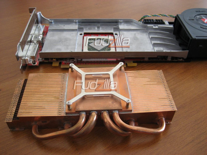 Non, ne criez pas au scandale, personne n’a pris de couteau pour éventrer cette malheureuse HD 2900XT. En fait point de couteau, mais plutôt de tournevis je dirais. En effet, nos confrères d’OCWorkbench ont encore eu une HD 2900XT oem, la version donc trèèèèèèèèèèèèèèssssss lonnnnnnggggueeeeeeeeeeee, entre les mains et ils nous présentent le radiateur de cette dernière. Ne me demandez pas comment ils ont pu avoir une telle carte, qui est présentée en ce moment même à Tunis par AMD, mais le radiateur paraît massif full cuivre, avec 4 énormes caloducs traversant le radiateur, un peu (beaucoup même) à la manière des radiateurs des 7900GTX.