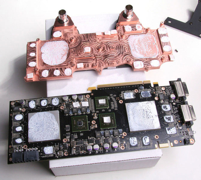 Après Koolance la semaine dernière, voici un aute larron de watercooling qui s’aligne sur le marché hyper select de la GTX295 single. Le DD-GTX295V2 possède une plaque cuivre au contact des GPU et des puces mémoire/bridge tandis que les embouts en sortie sont au choix de diamètre 1/4, 3/8 et 1/2". Le prix est de 135$, c’est à dire une grosse vingtaine de dollars de moins que son concurrent Koolance. Images en suite de news.