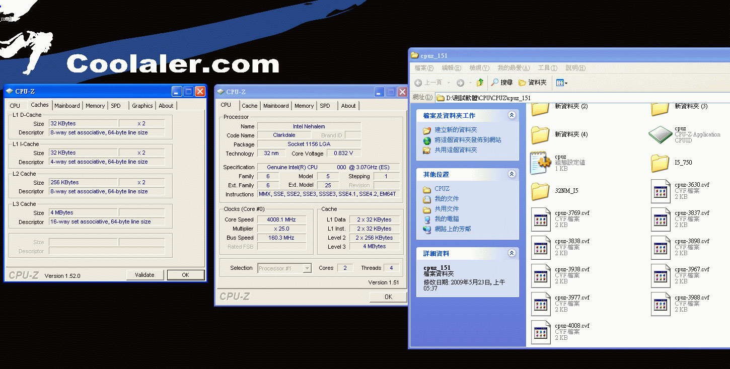 L’overclockeur Coolaler vient en effet de de publier sur son site le résultat d’un petit test qu’il a fait avec le futur Clarkdale d’Intel, dualcore gravé en 32nm pour rappel. Il a ainsi pu atteindre 4GHz, jusque là rien de spécialement enthousiasmant, mais là où cela devient hors normes c’est que le processeur a pu encaisser cette fréquence avec seulement 0.832V de Vcore ! Le screen CPU-Z montre également que le CPU, un Engineering Sample, était cadencé à 3.07GHz d’origine, même s’il est encore trop tôt pour savoir s’il s’agira bien d’un des fréquences de base des modèles définitifs. Vivement des tests d’overclocking max maintenant, car le Clarkdale semble avoir un potentiel très impressionnant. (Source PC Inpact)