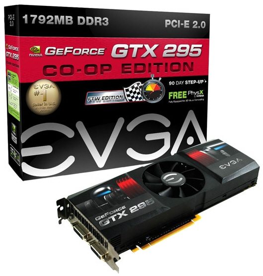 EVGA va lancer deux cartes GTX295 overclockées d’usine. De base une GTX295 c’est 576/1246/2016 MHz pour le core/shader/mémoire. Les autres caractéristiques ne changent pas avec 1792Mo de GDDR3 bus 448 bits et 2x240SP. Les deux cartes appartiennent à la gamme Co-op, la Superclocked a des fréquences de 602/1296/2052 MHz tandis que la FTW passe à 684/1476/2160 MHz. Les tarifs respectifs sont de 520 et 560$, les performances de la FTW principalement devraient prendre un coup de boost avec de telles fréquences. Images en suite de news. (Source Techconnect)