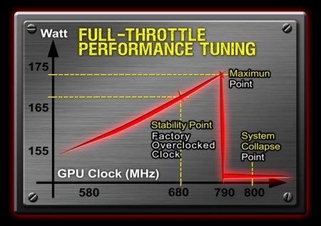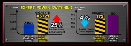 Gigabyte va lancer une nouvelle série de cartes graphiques baptisée Super Overclock. La première à sortir sera la GV-N26SO-896I qui est une GTX260. Les fréquences passent ainsi à 680/1466/2350 MHz pour le core/shader/mémoire, mais cependant ce n’est pas si exceptionnel que ça puisque le GTX260 a une tendance naturelle à bien mieux monter que ses deux soeurs GTX275 et GTX285. Pour sélectionner les GPU, Gigabyte s’appuie sur une méthode propre de test interne appelée GPU Gauntlet, ce qui lui garantit la montée en fréquence. Des slides également diffusés sur la toile permettent d’en savoir plus sur les propensions en overclocking de la bête, dont le GPU selon Gigabyte pourrait monter à 790MHz environ en overclocking. La marque précise également que grâce à des composants triés sur le volet, cette GTX 260 consommerait moins que les modèles de référence (une fois overclockés eux aussi à 680MHz bien entendu), et que le ventilateur n’accélèrerait pas avant 85° au GPU ! Slides disponibles en suite de news. (Source Guru3D et Gigabyte)