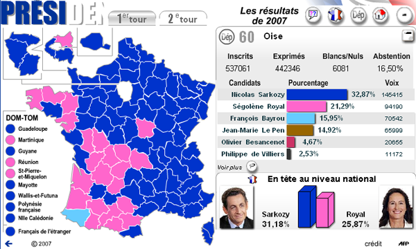 Une fois la fièvre de la soirée présidentielle passée, il demeure néanmoins encore des choses intéressantes à découvrir sur le net: les résultats définitifs et leur analyse.