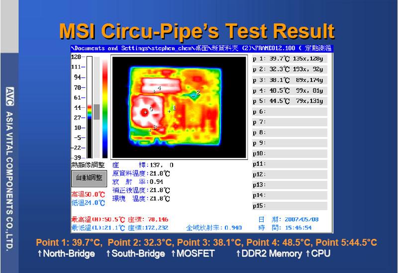 Ce sont nos confrères de 59hardware.net qui relaient l’information. La société Asian Vital Component a testé les deux nouvelles cartes mère P35 de chez MSI, la Platinum Circus pipe et la P5K, ces deux produits vous sont présentés sur cette page. Ainsi en usage, ils ont pris des photos infrarouges pour détecter les zones les plus chaudes des deux cartes mère. Les résultats se trouvent en page 2 de cette news, suspense….