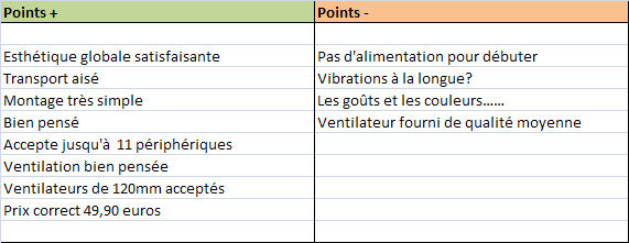 En tout et pour tout, il m’aura fallu 15 minutes grand maximum pour tout monter, bien dans les règles de l’art, et en prenant mon temps. Il n’est nullement besoin de sortir d’une école d’ingénieur pour monter cette tour, le montage s’est révélé extrêmement simple et accessible. La qualité est dans la norme des produits d’entrée de gamme, le métal également. La seule angoisse était de savoir si les éléments qui s’emboitaient le feraient sans anicroche, crainte accentuée par l’état peu présentable du boitier lors de nos tests. Nos angoisses ont été levées sans le moindre problème, et j’ai trouvé personnellement l’expérience fort amusante. Quel meilleur moyen d’apprendre pour un néophyte que de monter soi même sa tour, et comprendre l’agencement des éléments.