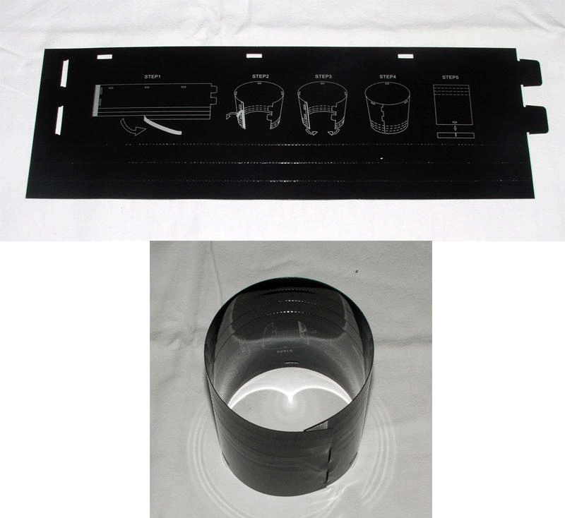 Cet élément mystère est un airduct à monter sois même. Objectif? guider l’air qui est évacué par le processeur hors du châssis, néanmoins ce système ne marche que pour des radiateurs ventilateurs qui ne sont pas type "colonne" comme le Zalman9x00. Dans de tels cas, faudra se passer de cet airduct à l’utilité bien maigre, nous verrons pour quelles raisons. En plastique semi rigide, il se colle et se clipse sur le socle, lui même vissé sur le capot. A noter que les 4 vis de ce socle cassent un peu l’esthétique générale, c’est dommage.
