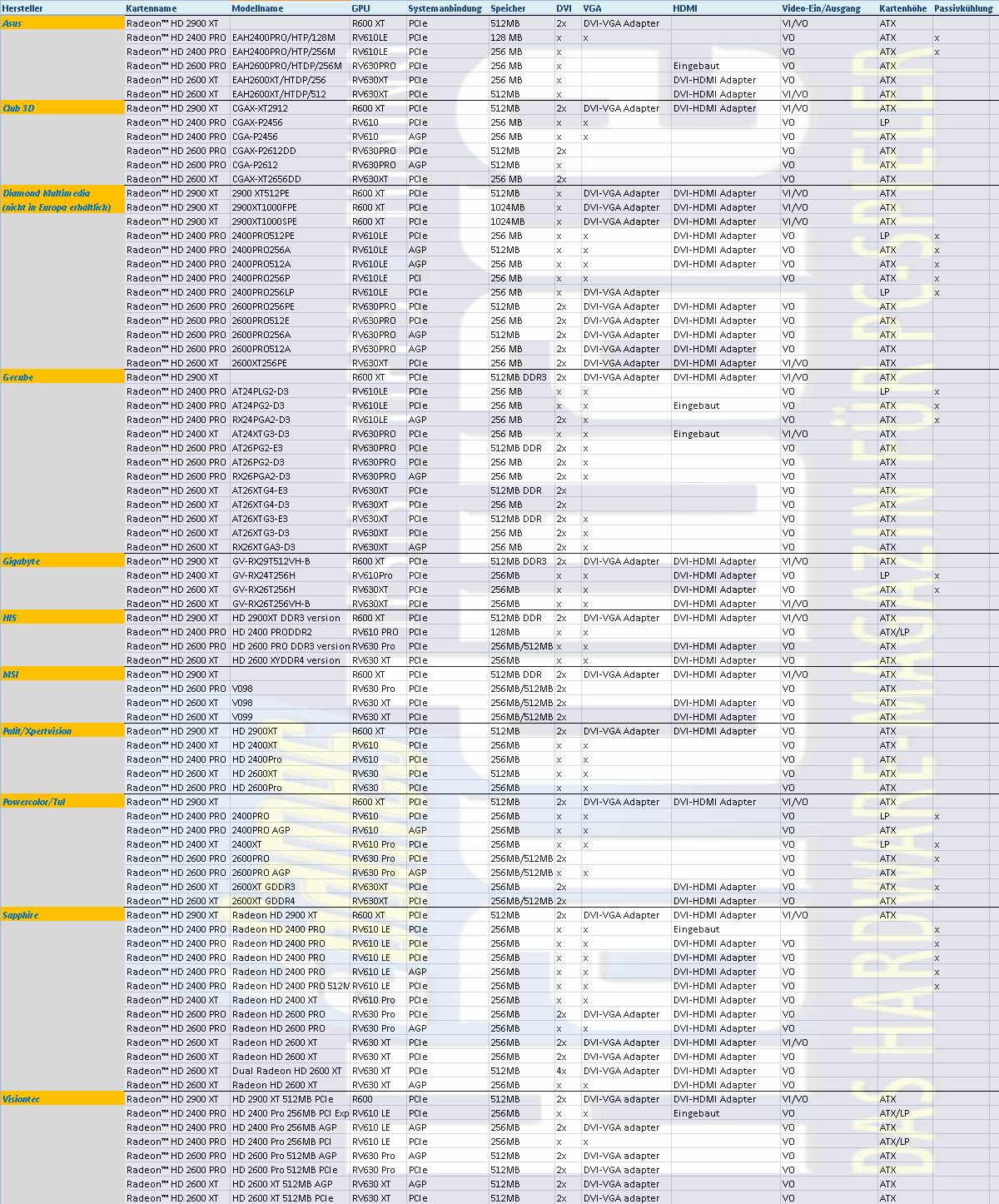Un forumeur du site VR-Zone a publié la liste de toutes les cartes graphiques de la série HD 2000 qui devraient être proposées par les différentes marques du marché.