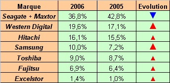 Parts de marché 2006 des ventes de disques durs